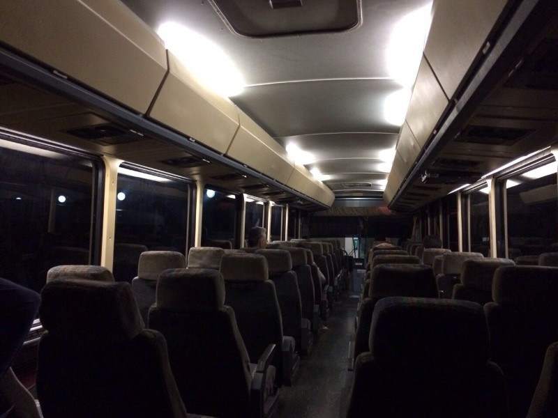 まずは、お迎えのバスが不気味なこと不気味なことっっ