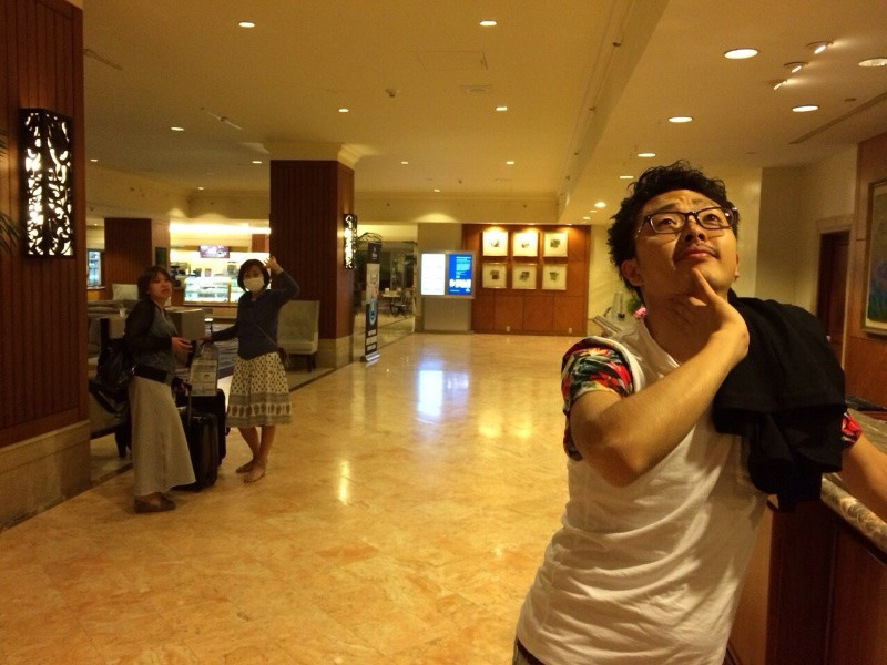 ホテルに到着して、おちゃらけ佐藤さん。