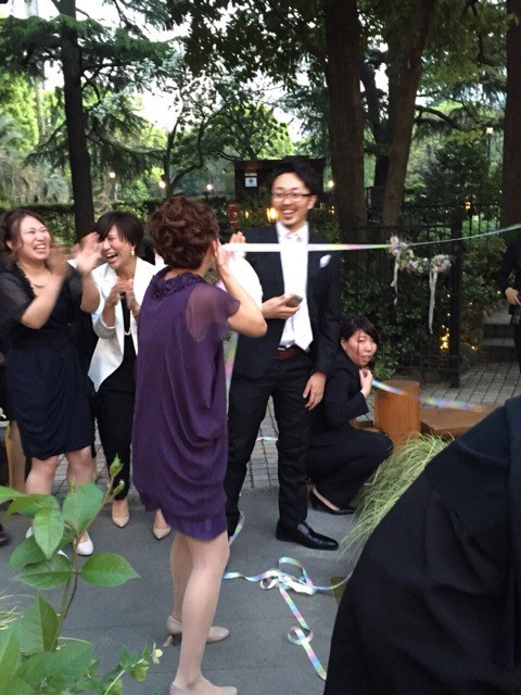 ガーデンウェディングだったのでみんなで外で飲めてやんやで最高でした!