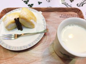 寒かったのでバームクーヘンとホットミルクを注文!