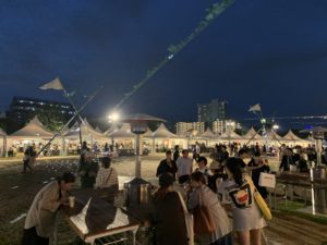 夜はライトアップしたりしてビアガーデン的な雰囲気に早変わりー???
