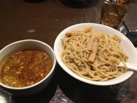 魚介豚骨のスープの濃厚かつ香ばしい香りと太麺が故の確かな歯ごたえの麺、これぞつけ麺の醍醐味…