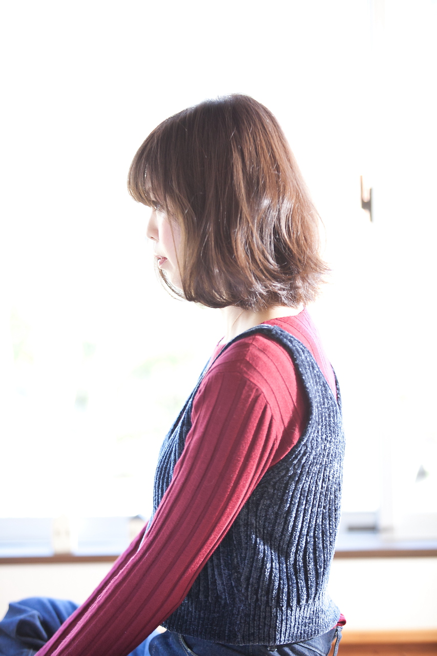 ・肩くらいのハネやすい長さ・簡単スタイリングによって、襟足のハネやすい毛先を活かしてまとまりすぎちゃうボブを改善!!動きのあるいまどきボブ。